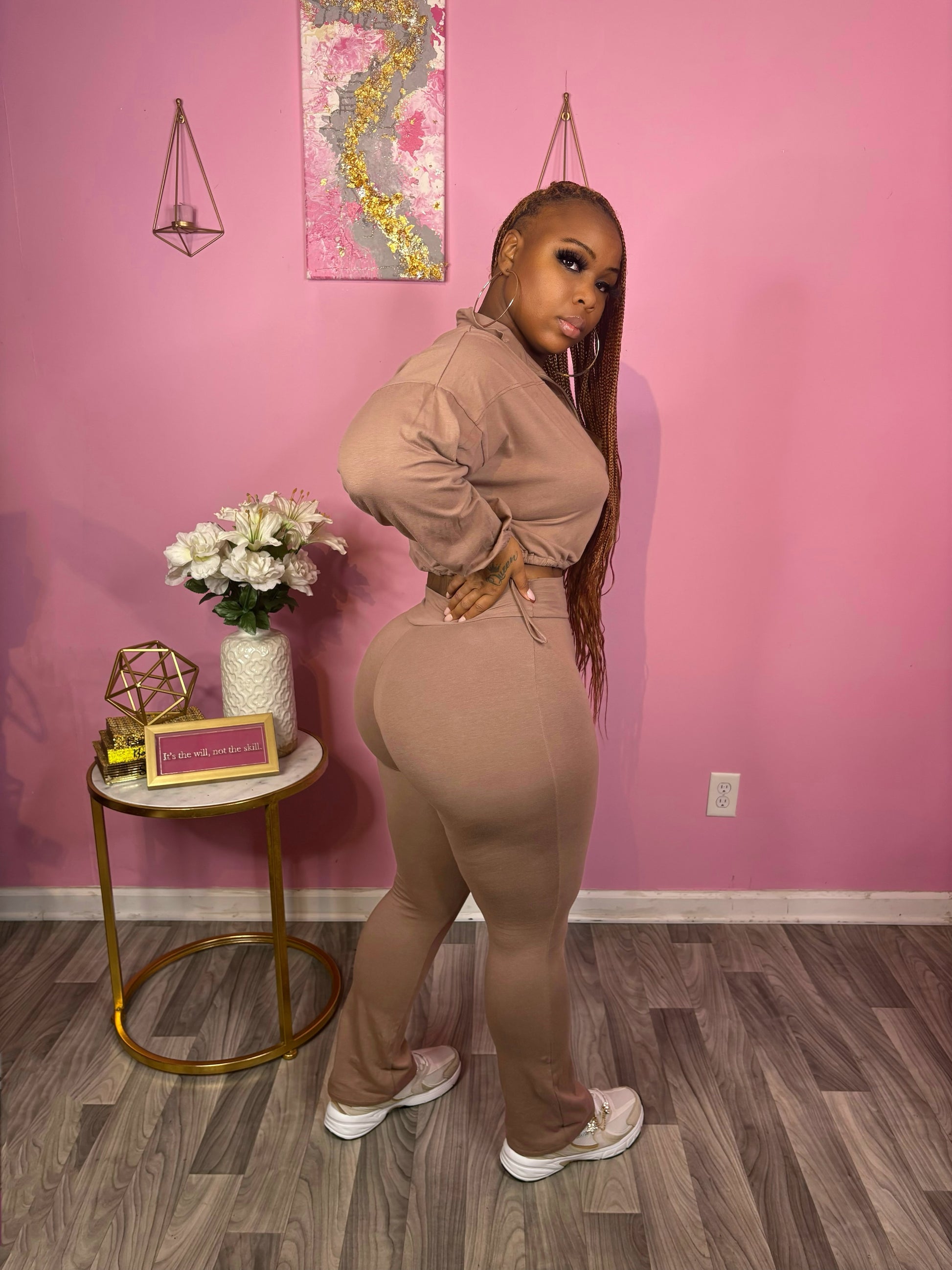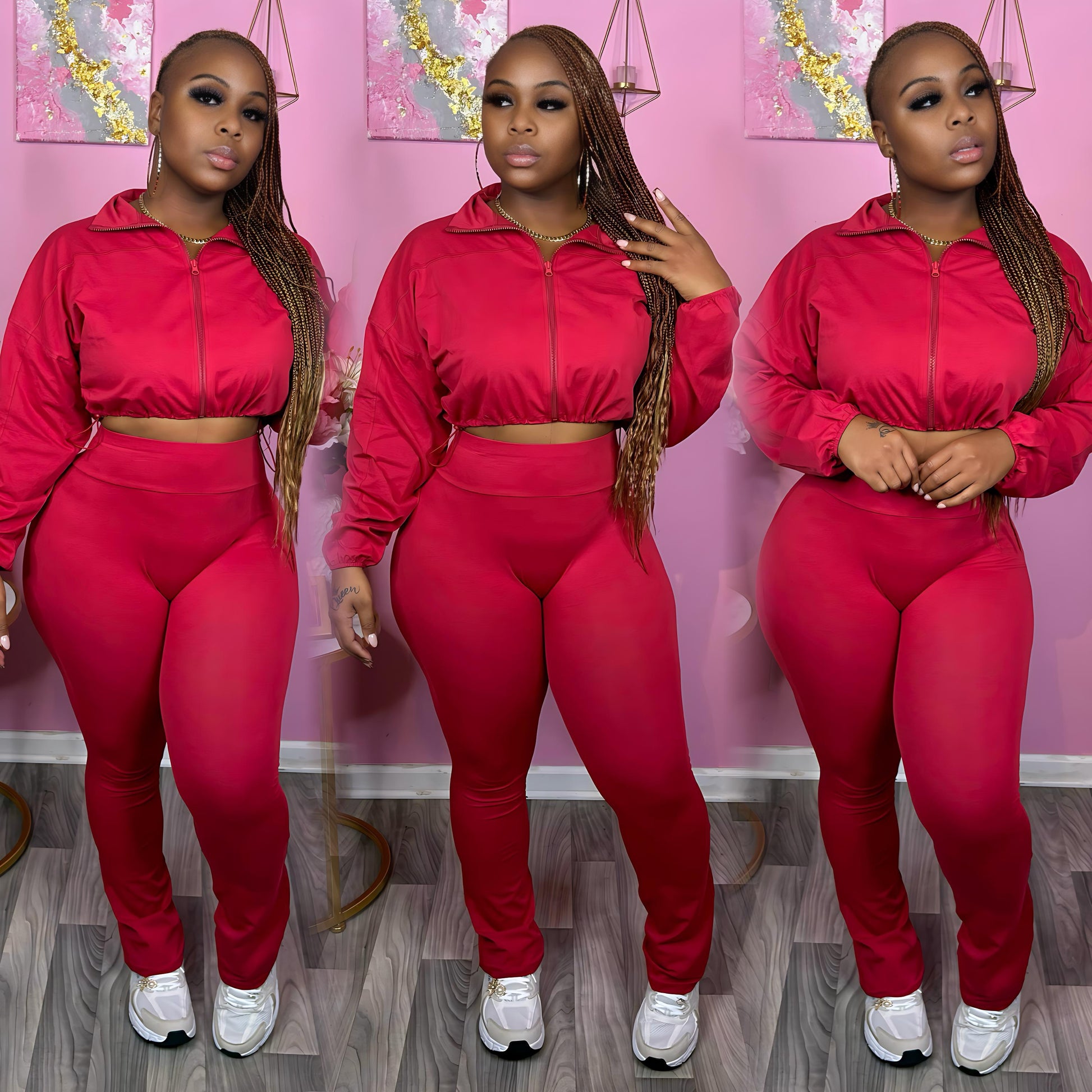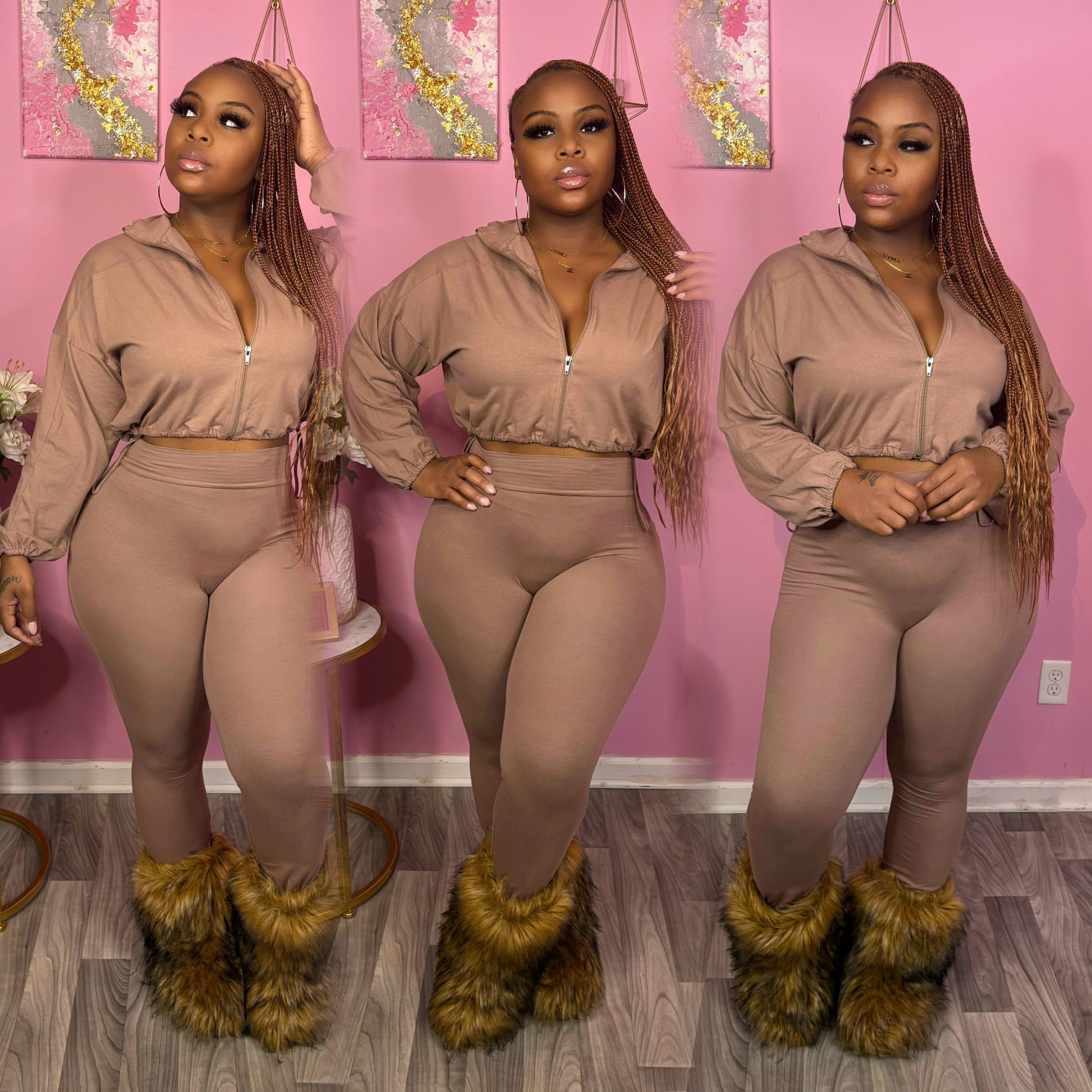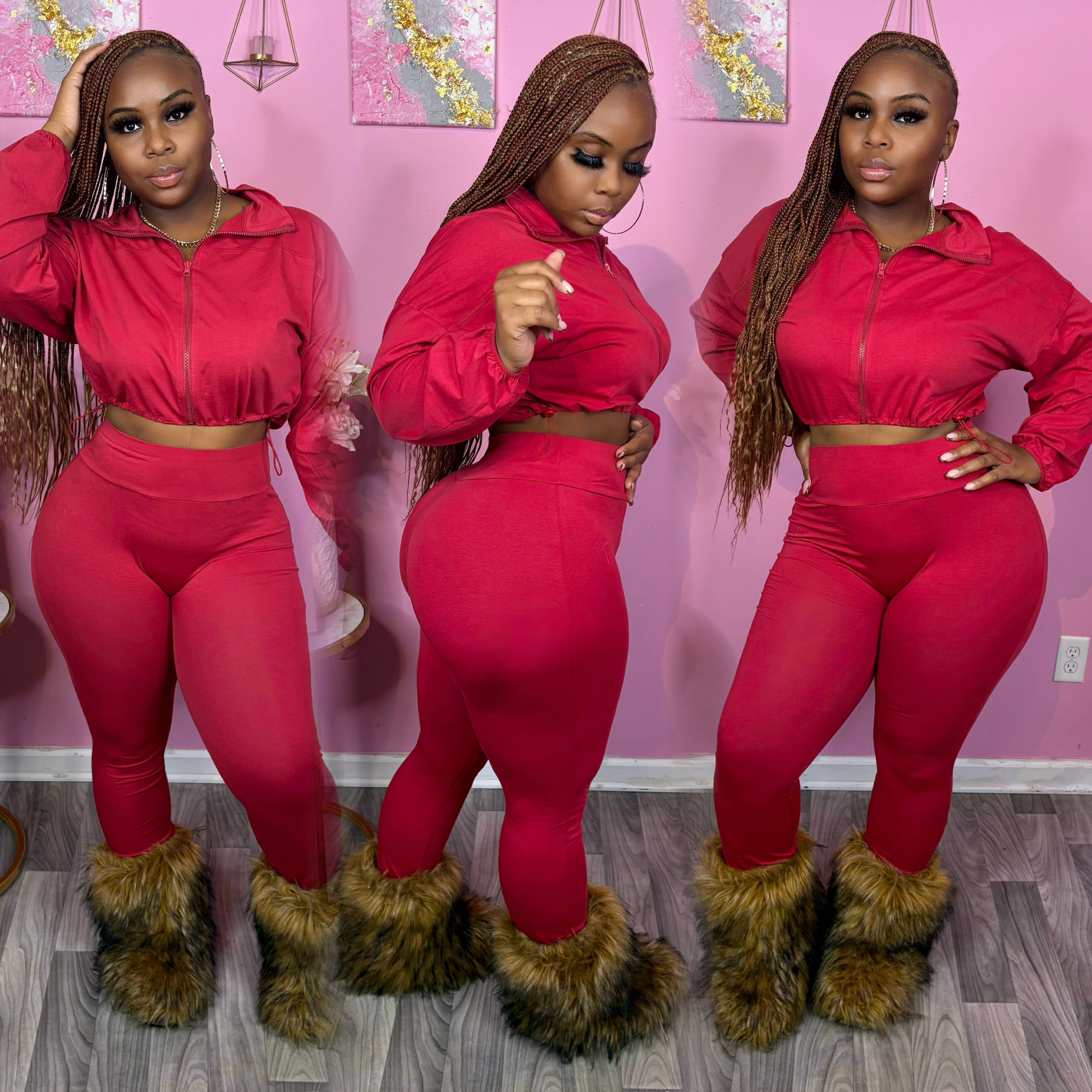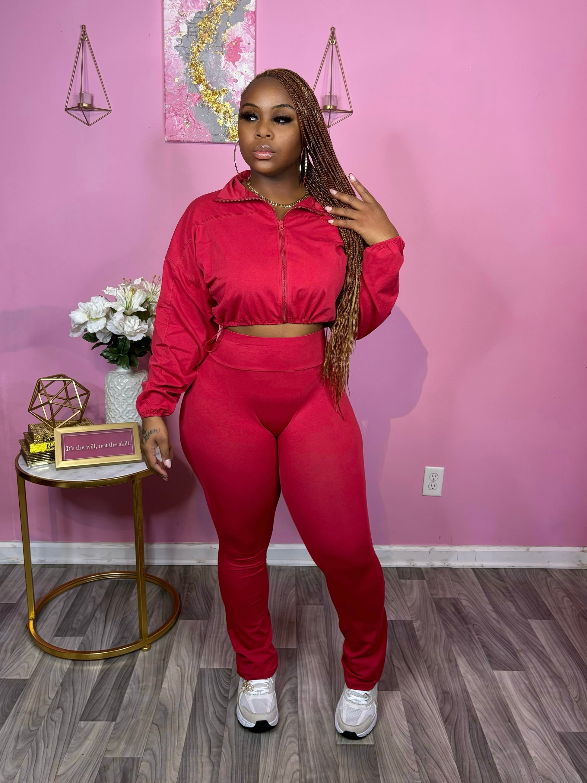 Cute chill solid color active 2pc cotton set with long bubble sleeve zipper front crop top and matching high waist leggings Buttery soft feel. Fabric is very stretchy. Extremely well made.