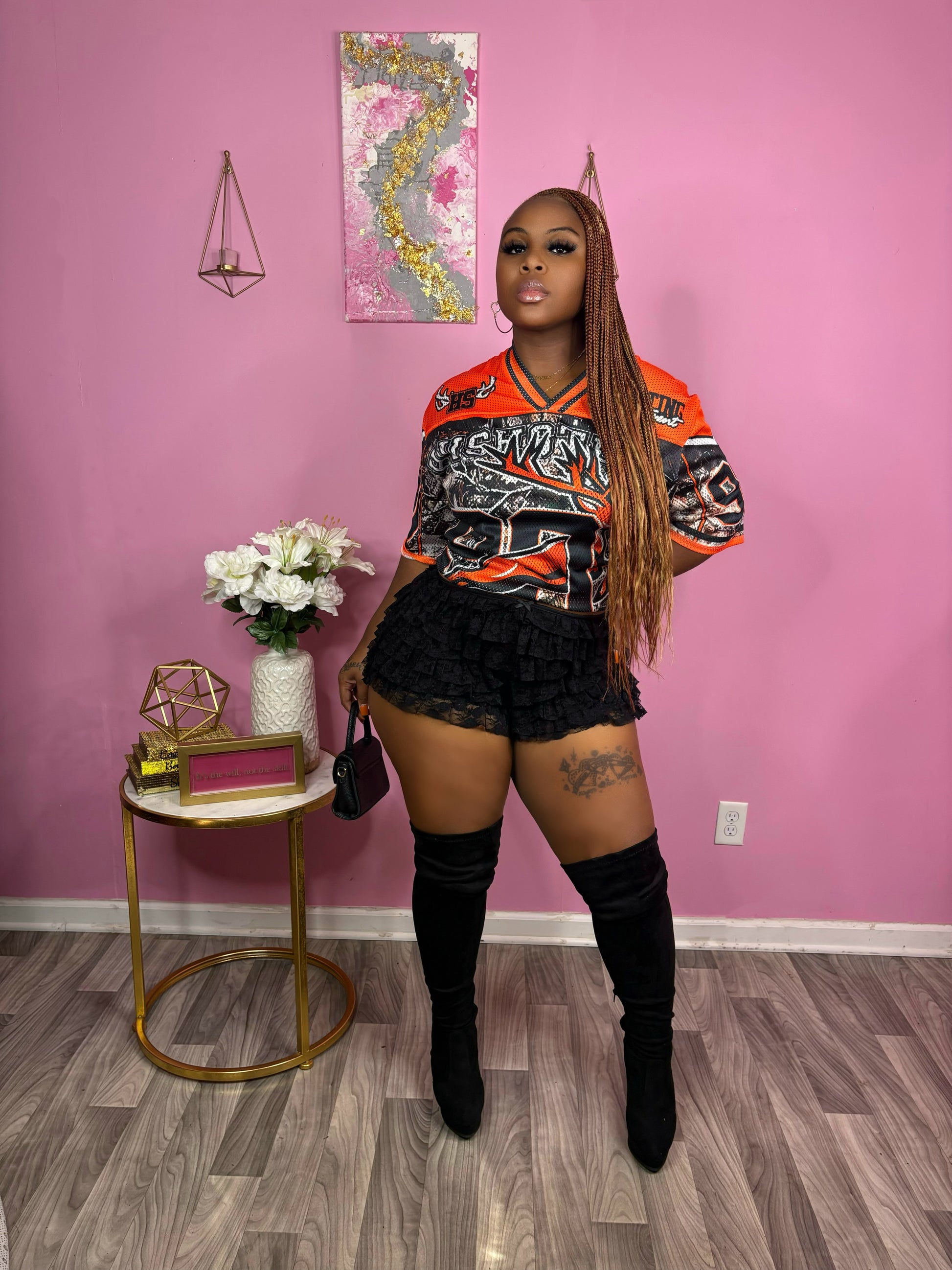 Edgy number print v neck oversized short sleeve V neck jersey.
