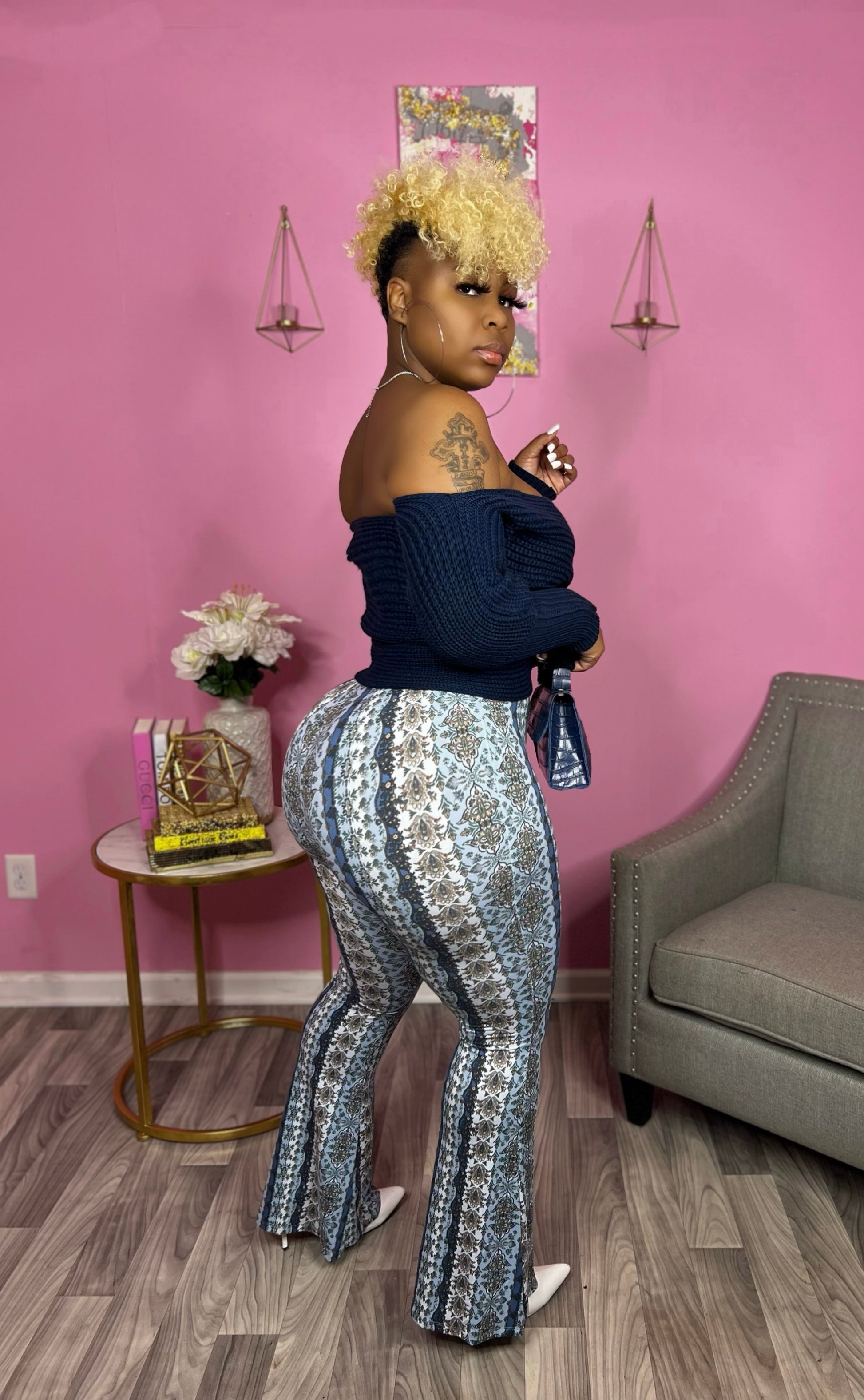 Sexy printed jiggle pants giving exactly what their suppose give Hunny! Flared legs are always a plus! Super soft and comfortable material with amazing stretch!