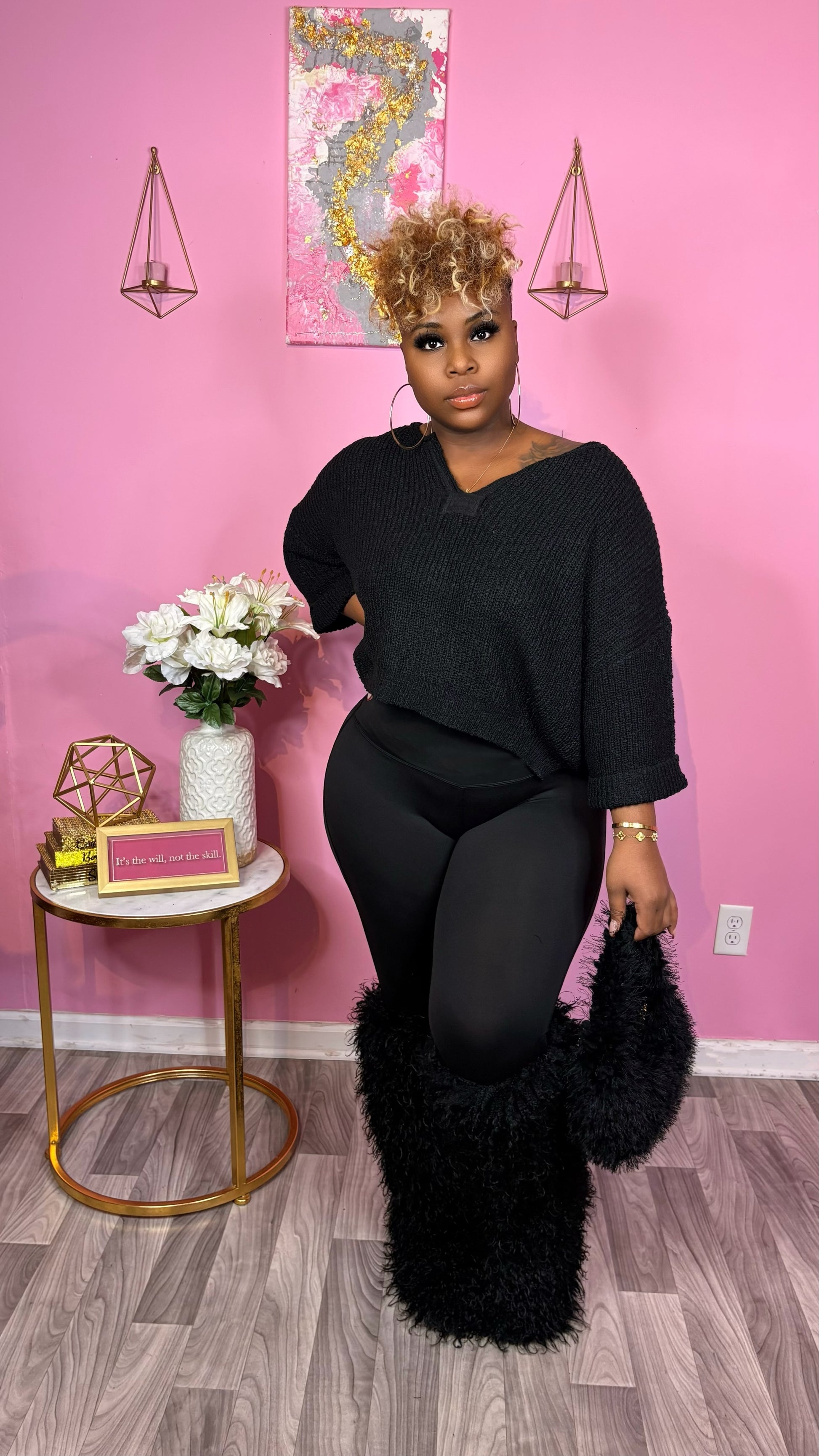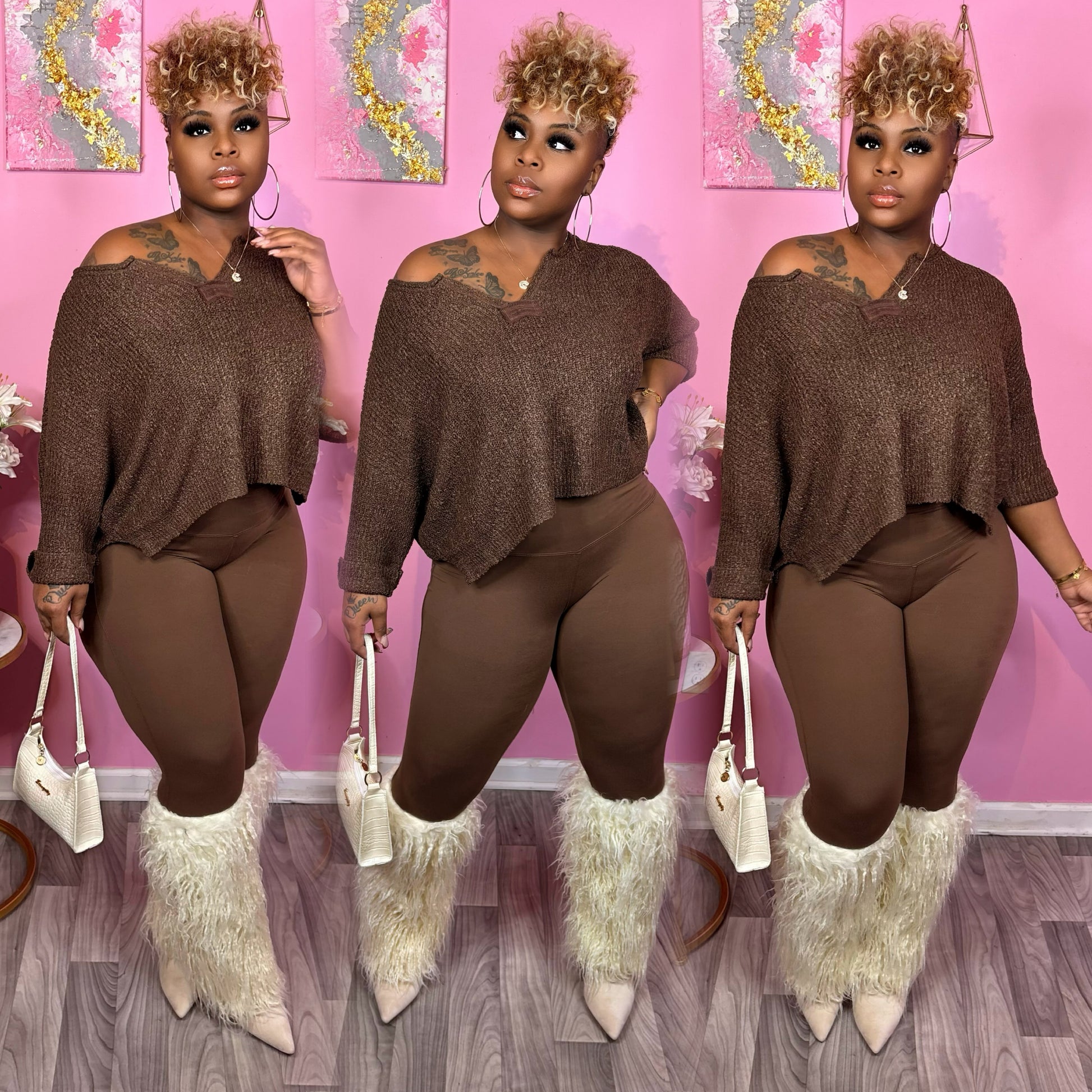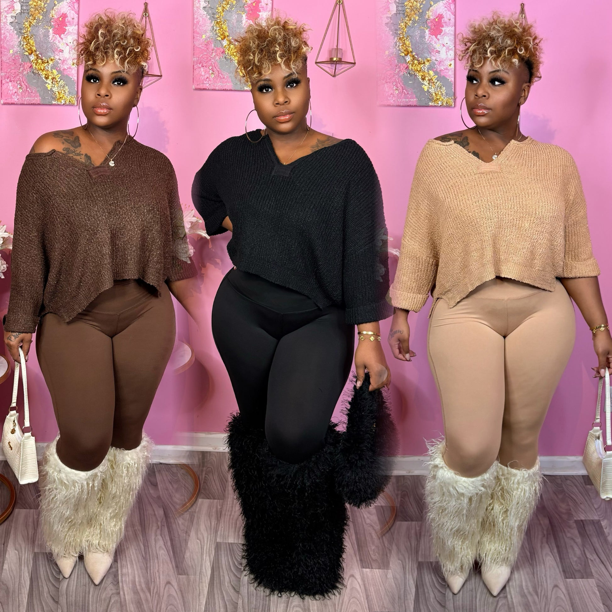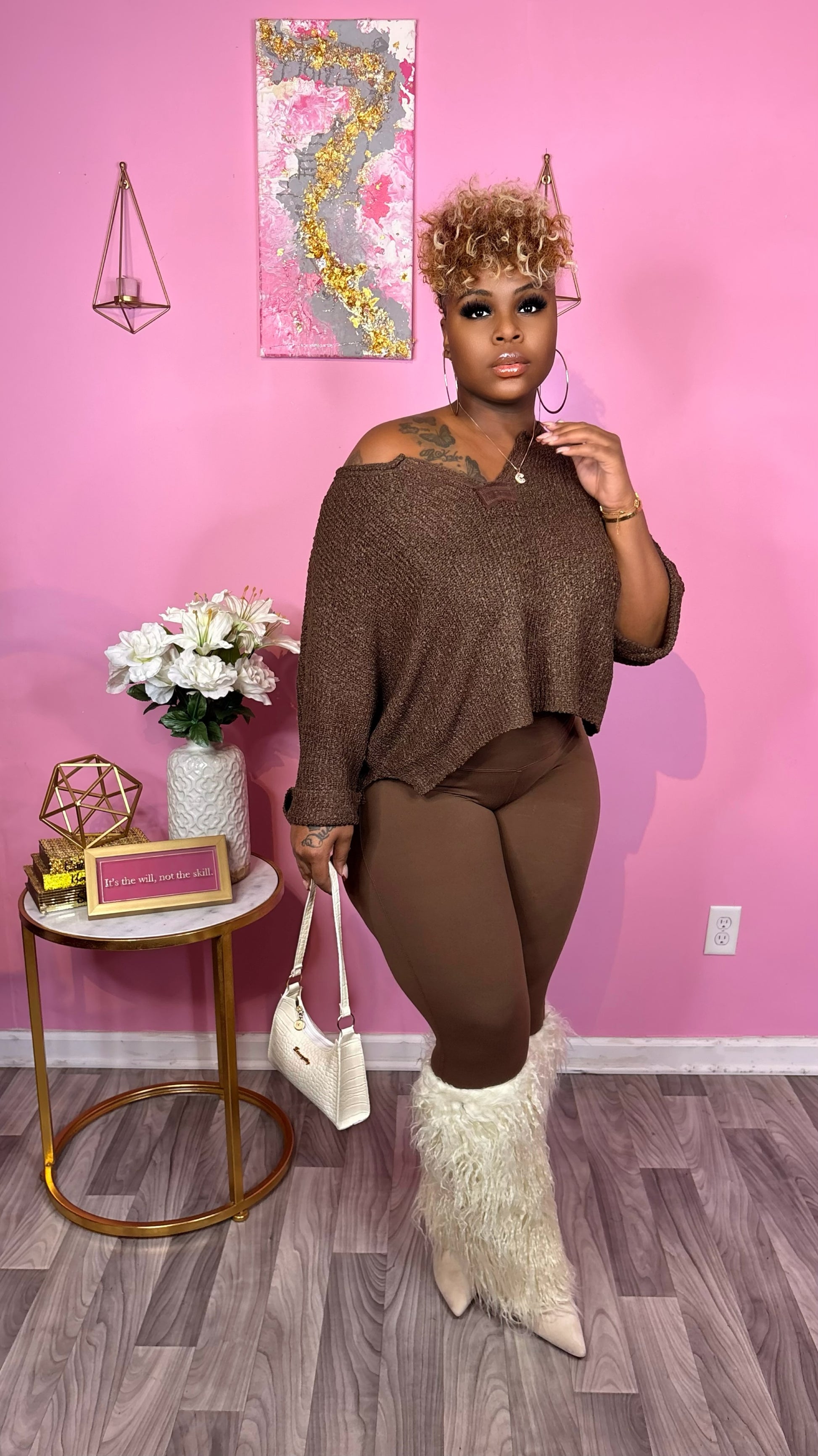 Stay warm and stylish with this adorable front-slit patch super thick sweater featuring folded sleeves for that effortless vibe. Paired with matching buttery-soft leggings, this set is the ultimate blend of comfort and fashion.