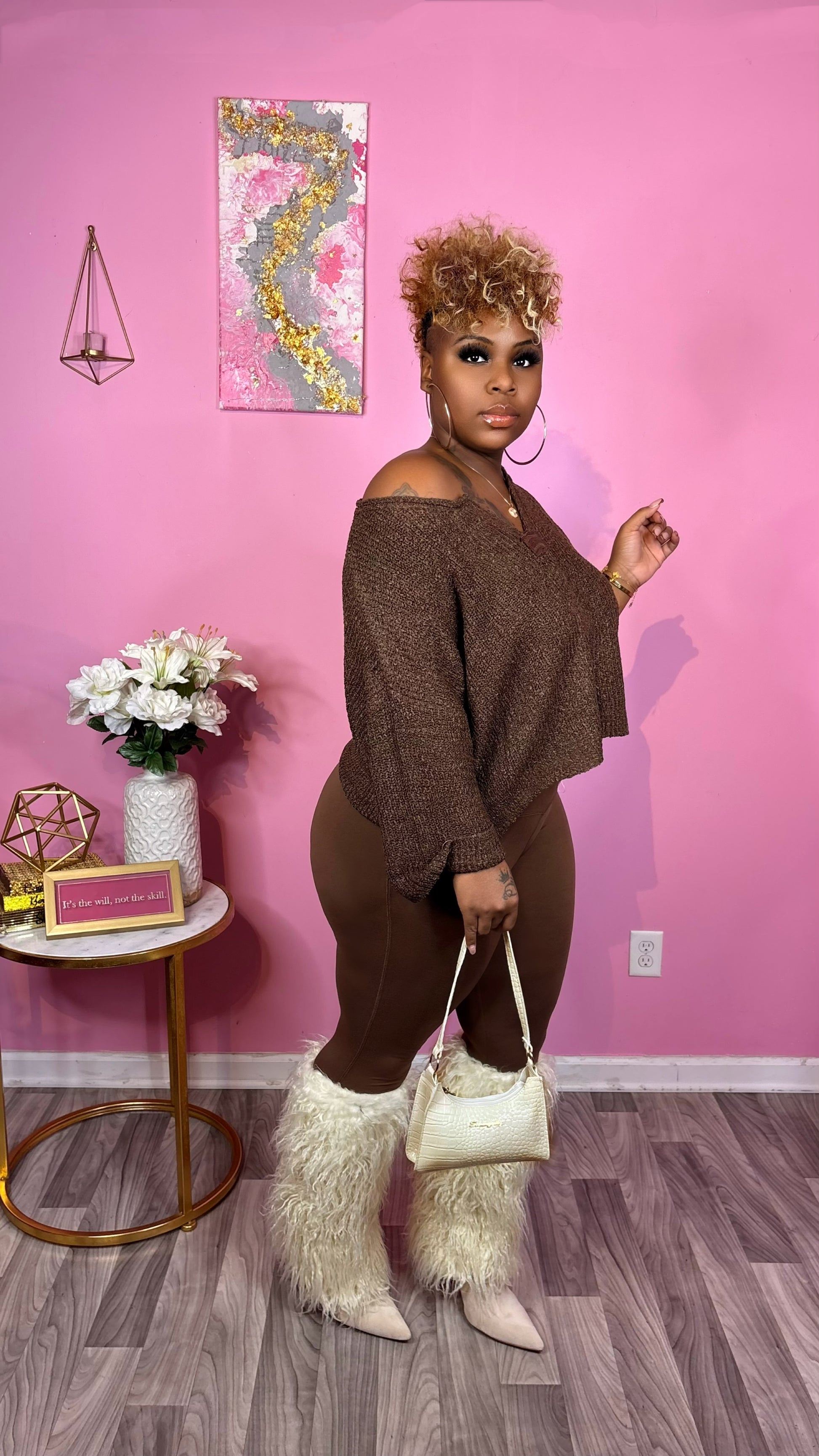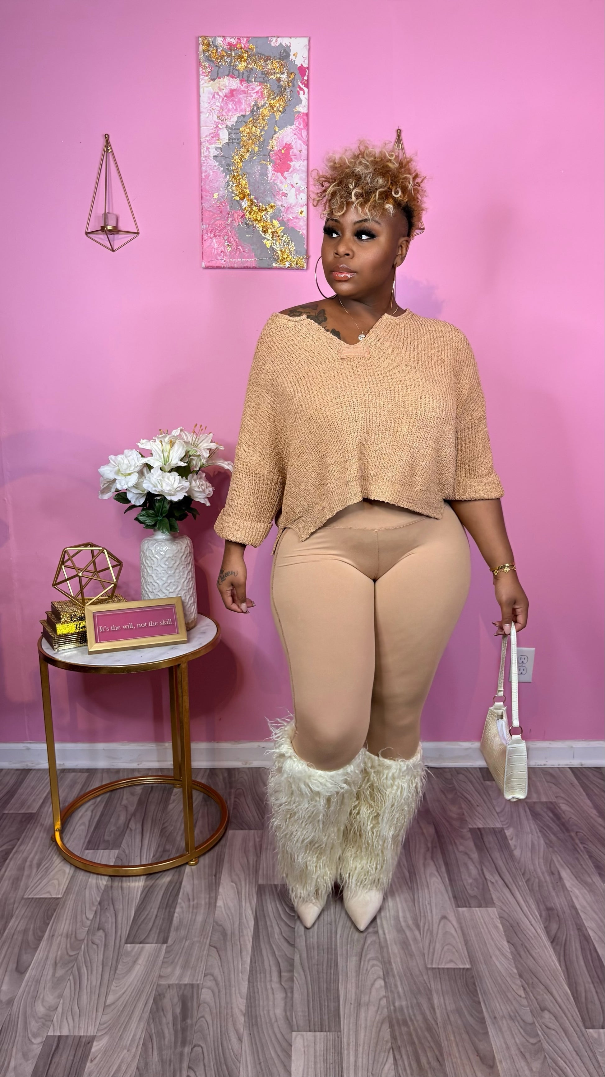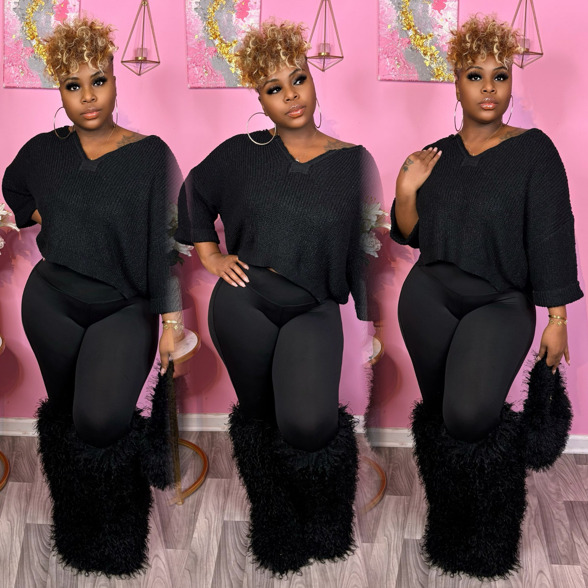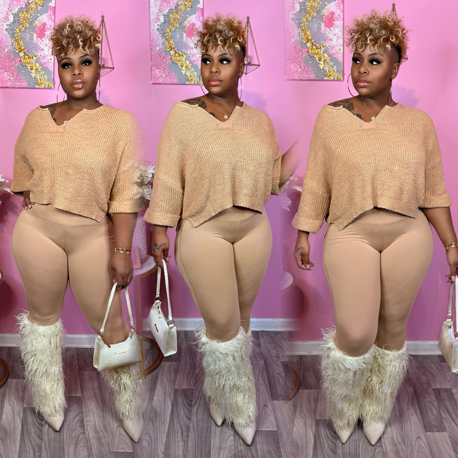 Stay warm and stylish with this adorable front-slit patch super thick sweater featuring folded sleeves for that effortless vibe. Paired with matching buttery-soft leggings, this set is the ultimate blend of comfort and fashion.